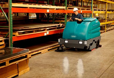 坦能7300中型电瓶供电驾驶式洗地机可清洁恶劣的工业环境,且无有害的发动机燃气排放